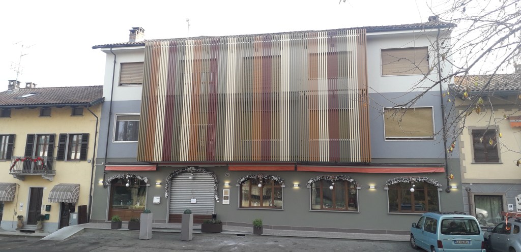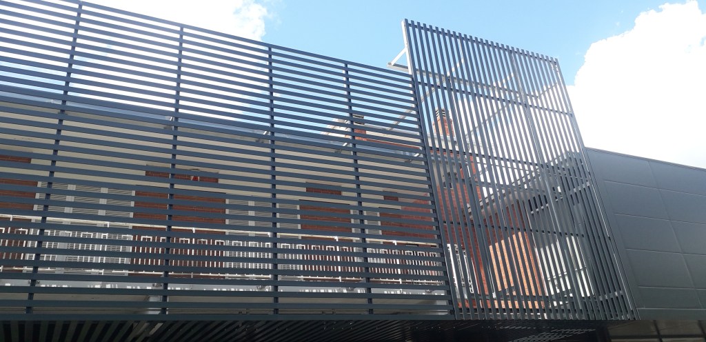 Serie 84 F on lamelle in alluminio profilato sezione alta 16 mm e base 84 mm, posizionata con sistema di supporto profili omega, in acciaio zincato o alluminio, per il montaggio di lamelle separate. L’inclinazione doghe può essere scelto tra 0°, 25° e 45° di inclinazione.